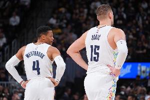 体育资讯3月26日讯 NBA常规赛,掘金142-135战胜独行侠。约基奇拿下23分21板19助,本赛季第30次拿下三双。